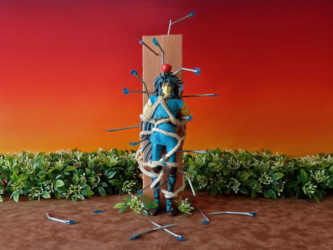 「弓の練習中 偶然お前が通りかかって――」