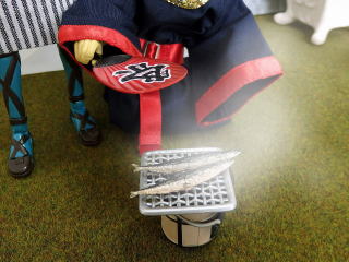 「七輪を使うと遠赤外線で 中までふっくら焼ける。